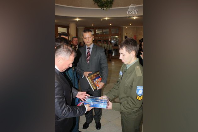 Александр Петрович поздравил участников, посетил выставку пожарной техники и наградил сотрудников учреждений системы МЧС. Студенты направления «Техносферная безопасность» Воронежского института высоких технологий приняли непосредственное участие в программе этого дня, побывали на выставке пожарной техники, познакомились с новшествами в организации пожарной безопасности, в торжественной обстановке вручили вымпел ВИВТ направления «Техносферная безопасность» Президенту Федерации пожарно-прикладного спорта России А.В. Чуприяну, который в знак благодарности подарил студентам ВИВТ книгу «История государства Российского» Николая Михайловича Карамзина.