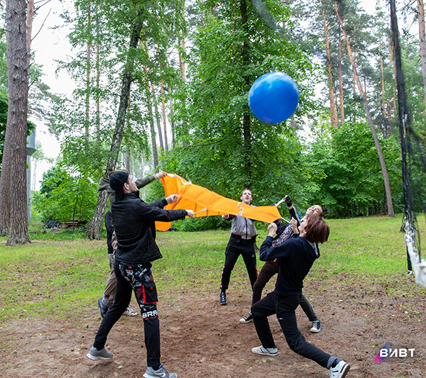 После интеллектуальной разминки наступила физическая: участники проходили различные испытания, направленные на сплочение команды.